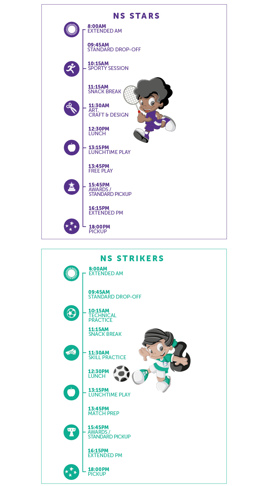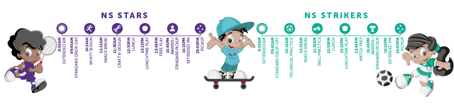 Each day is never the same. We have a balance in activities and maintain enthusiasm and excitement in all that we do. Take a look below to see an example of a typical day with NSSport.